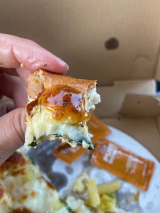 Okay so I mentioned it comes with dessert. Well! The best thing about their mountain crust is how much there is! They send you home with honey to put on top of it. I’ve never had this at any other pizzeria! It’s a great way to end the meal. This pizza was 2 servings for me. I can’t wait to go back!